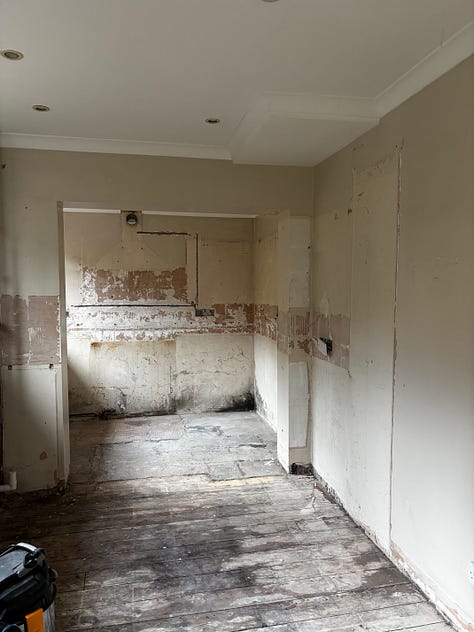 A skip was due to be delivered on Thursday last week, ready for the start of the works today. I had organised a man and van (two very strong men and a van) to come and take out fridge freezer and dishwasher to my in-laws that morning, and left to collect my children from my parents in the middle of the day. I returned to this…
