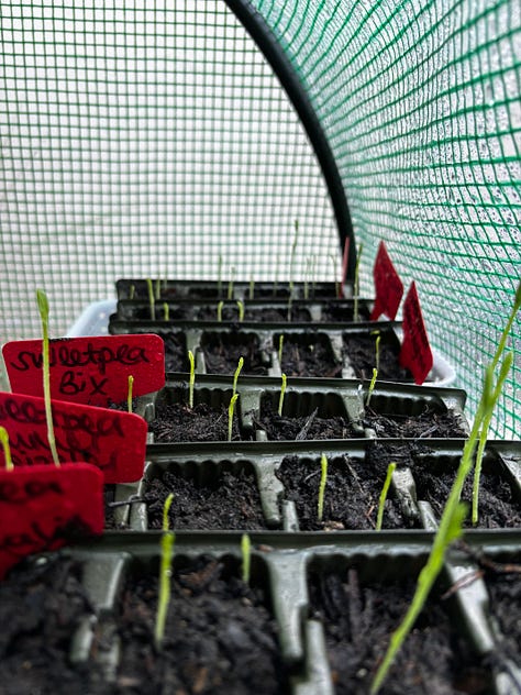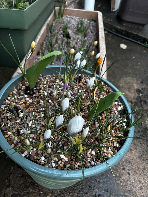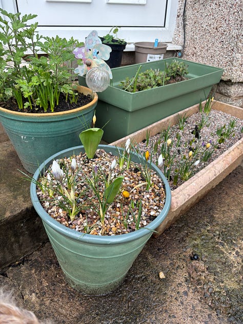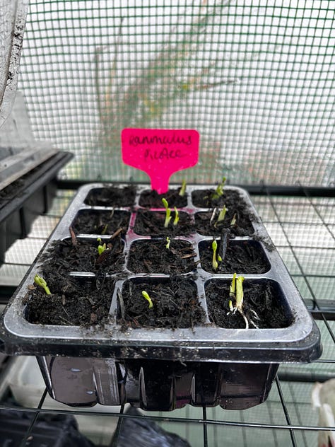 The garden is starting to wake up, the ranunculus and sweet peas are growing well, the crocus are starting to bloom and it feels like spring is about to appear. I have much to do, lots of old foliage to cut back, more annuals to plant, but the above has taken up all my time.